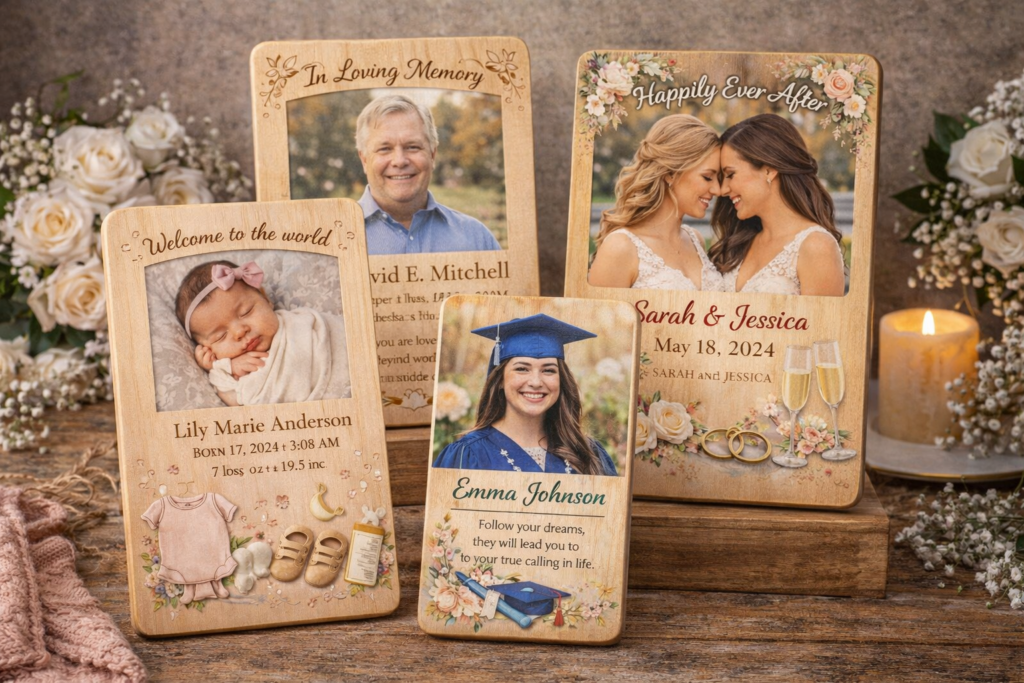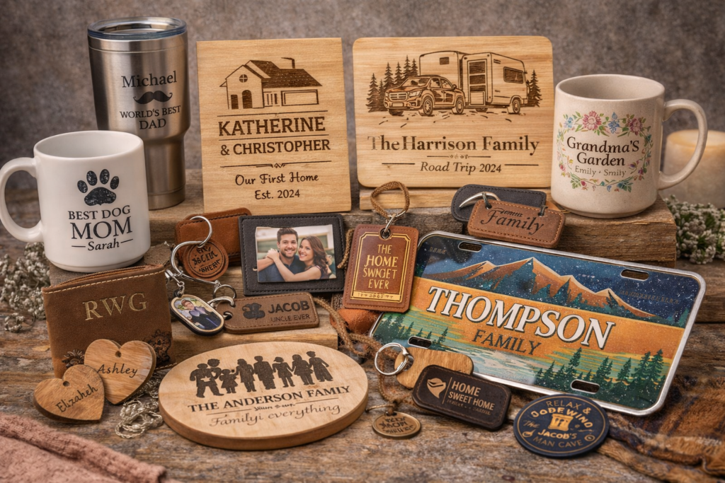 Precision engraving on wood, leather, and specialty materials for personalized gifts and keepsakes.