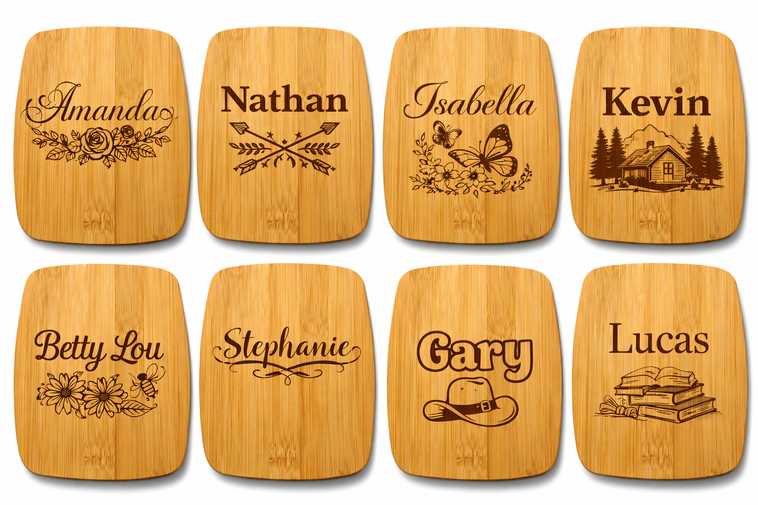 This isn’t a cheap print or surface mark. Laser engraving burns the design directly into the wood, creating a lasting impression that holds up through years of use.