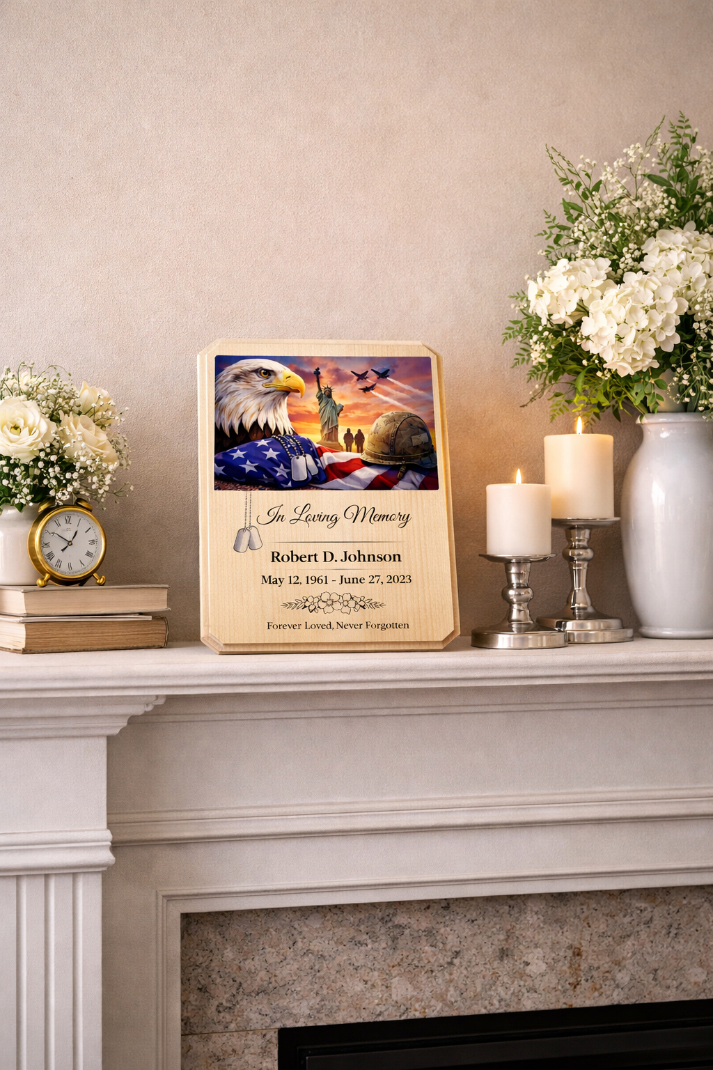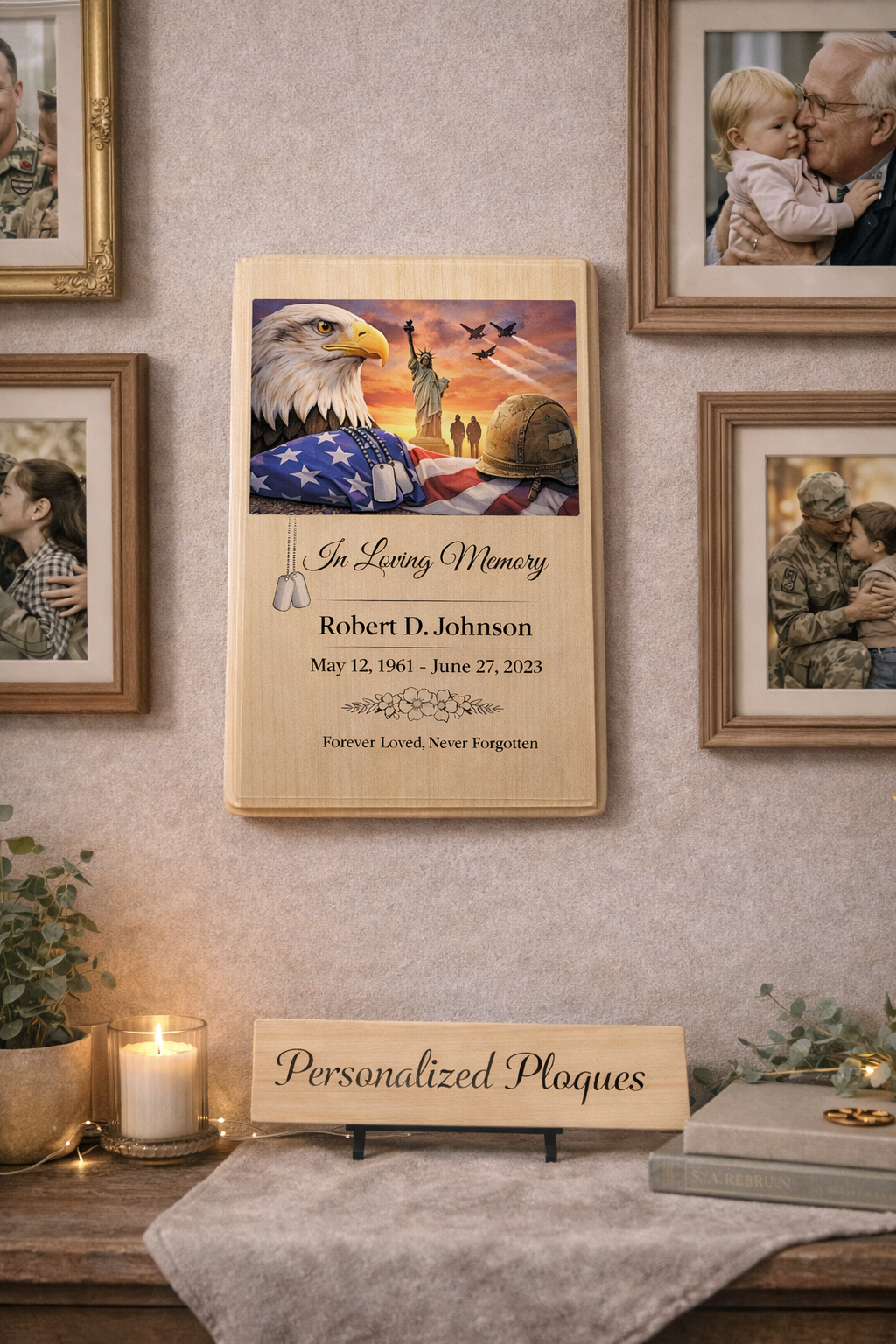 Honor the memory of a loved one with a custom engraved memorial plaque designed to preserve their legacy with care and respect. Each piece is thoughtfully crafted and precision engraved to create a lasting tribute that can be displayed in your home, or special place of remembrance.